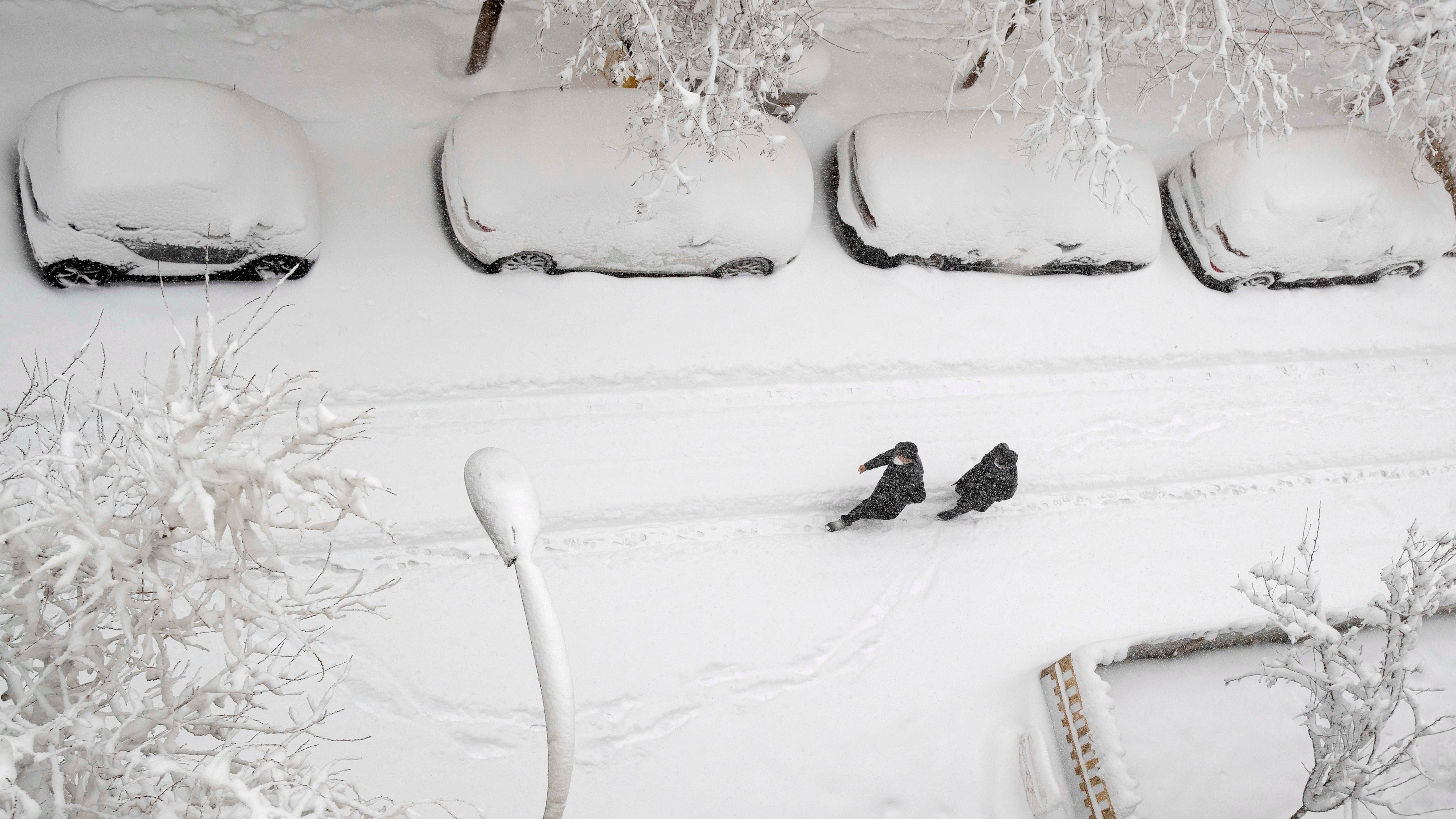 Autos wurden unter mehr als einem halben meter schnee begraben, bäume brachen unter der schneelast zusammen.